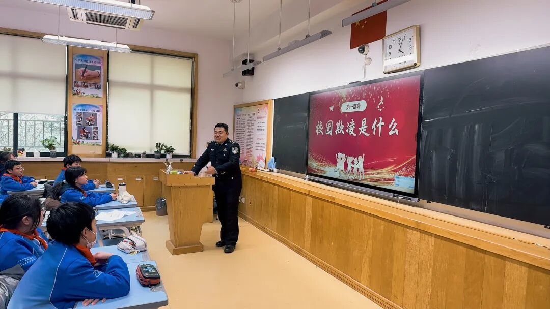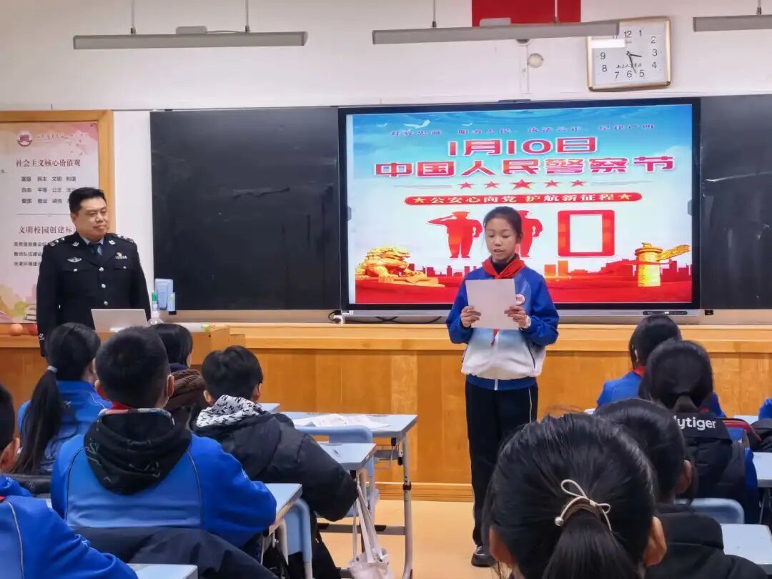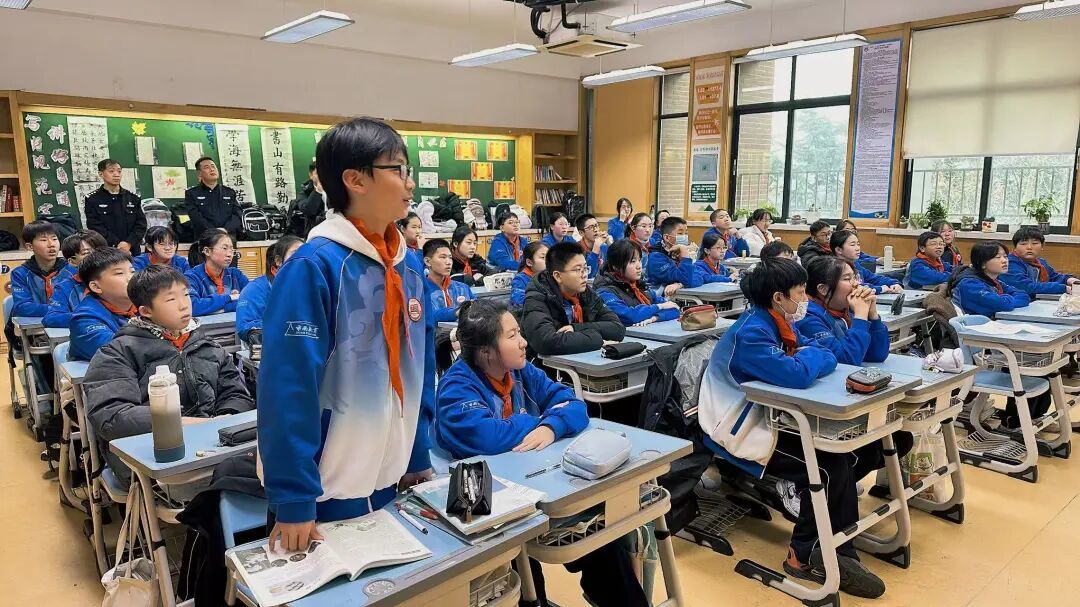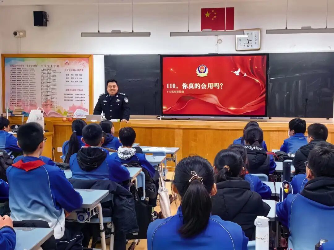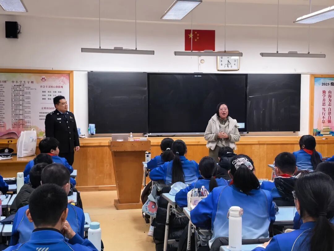 2026年1月10日,我们将迎来第六个中国人民警察节,同时也是全国第40个“110宣传日”。这一特殊节点承载着对人民警察队伍忠诚担当的崇高敬意,“110”这串温暖的数字早已成为守护平安的坚实符号。为引导少先队员读懂藏蓝制服背后的责任与奉献,强化法治意识、掌握安全技能,同时深化对110报警知识与校园霸凌防治的认知,青岛第二十六中学教育集团(京山校区)七(7)中队特邀青岛市公安局特警支队维稳勤务大队进校园开展“致敬藏蓝 感恩守护”——“法治微课堂”主题活动,让法治之光照亮青春成长路。