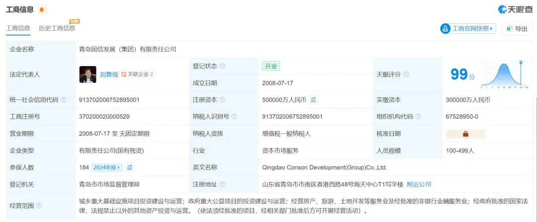 首先来看青岛海发,其是青岛市委、市政府批准成立的市直大型国有企业,截至2024年底资产总额达1500亿元。目前,企业官网已经更新,显示其注册资本达146.8亿元。