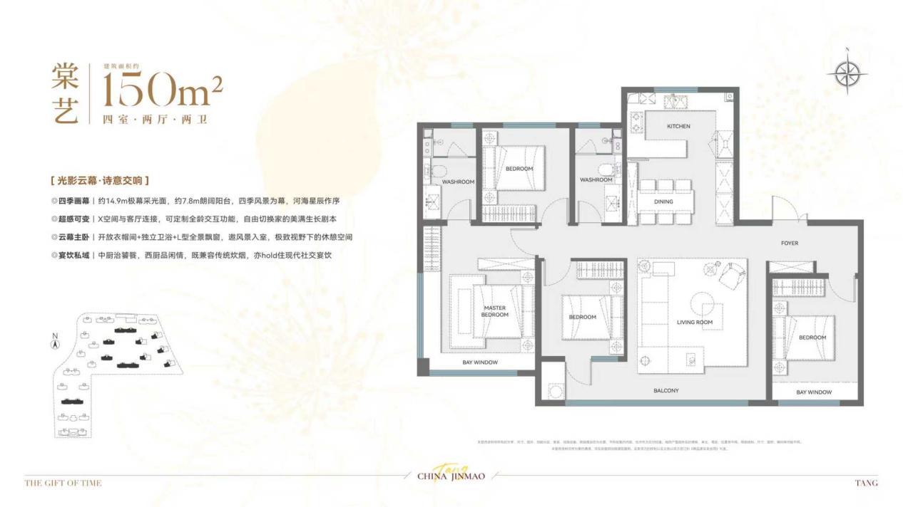约150㎡户型,以14.6米的通透采光面搭配约7.8米阔景阳台,四季风光与河景随窗入画;X空间与客厅相连让全家互动更灵动;开放餐厨与全明格局适配中西厨场景,兼顾生活松弛感与仪式感。