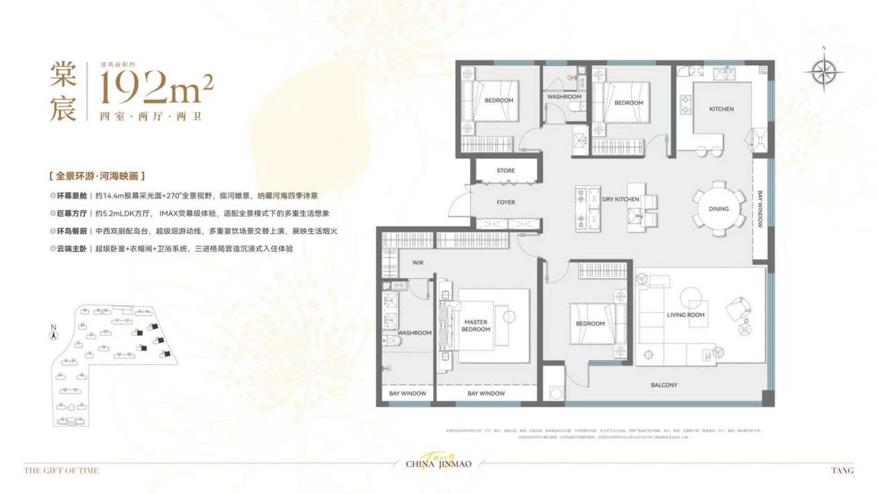 约192㎡户型,更是将生活仪式感拉满。270°全景视野,躺在床上就能邂逅日出日落的浪漫;5.2米LDK方厅,既是孩子的玩乐天地,也是大人的社交主场;三进式主卧套间配备独立卫浴与衣帽间,尽显尊崇私密。