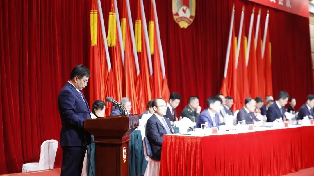 管寿果代表政协第十四届青岛市市南区委员会常务委员会作工作报告。