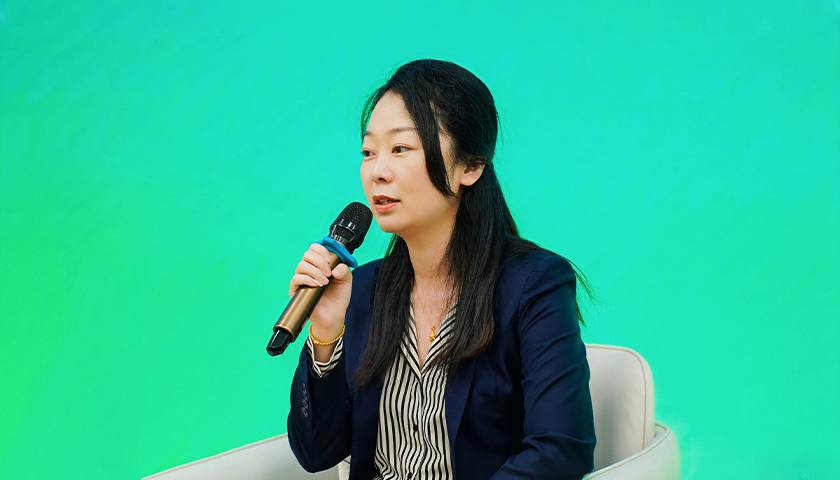 在圆桌交流环节,青岛沃隆食品股份有限公司副总经理王萍发表观点。