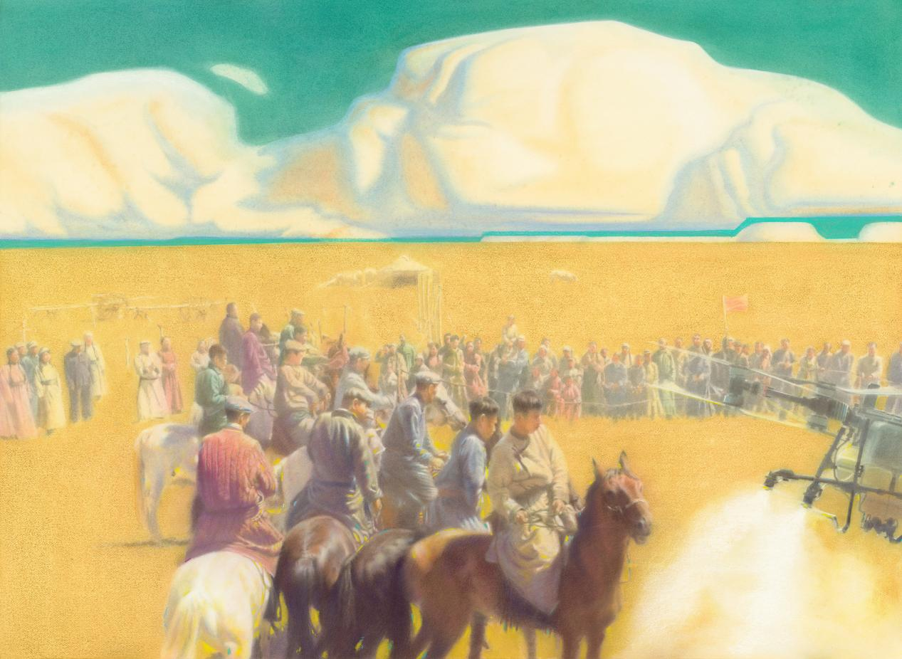 (王建峰《金原牧鹰》120×110cm 纸本水彩粉画)