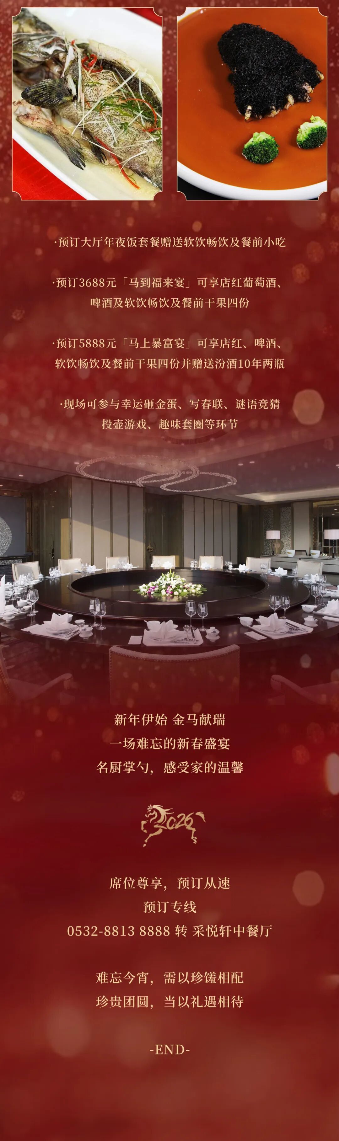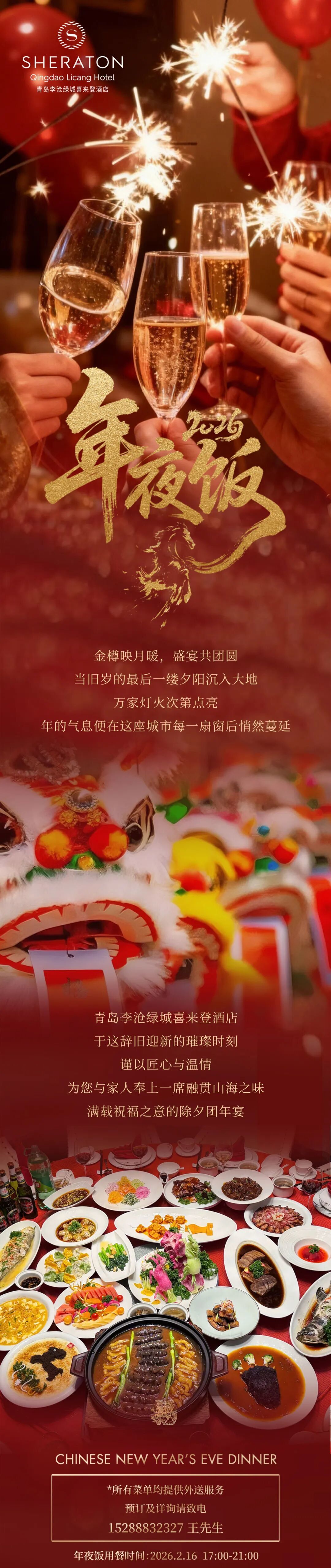 华庭飨岁,盛筵流光丨除夕团圆宴                                                                                                                     青岛李沧绿城喜来登酒店                                                                                                  2026年1月16日 18:05               山东
