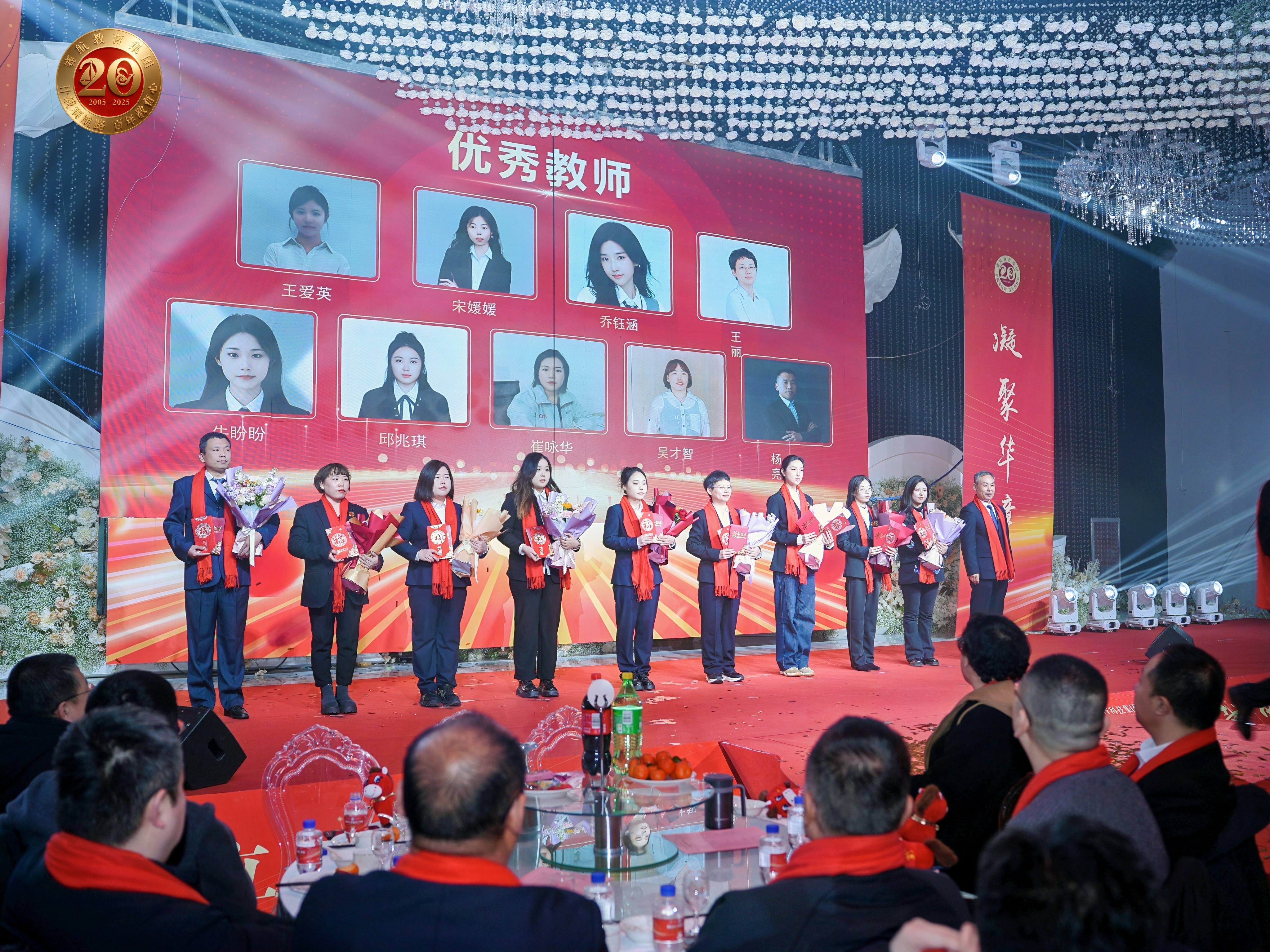 廿载深耕守初心,育人铸魂担使命庆典会场气势恢宏,红色搭配金色点缀,尽显喜庆与庄重。此篇章拉开帷幕,现场掌声雷动,气势如虹。大屏幕上,二十载教育成果展缓缓呈现:数万学子的成长案例、数十项行业荣誉、多元化的教育产品矩阵,每一项成就都印证着赛航“立德树人”的初心。