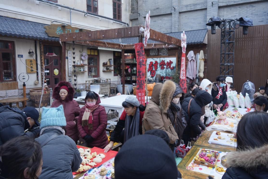 若要论哪里人气最旺,“非遗年货·灶起市集”当仁不让。酥香炸肉的滋滋声、海鲜疙瘩汤的鲜香气、传统糕点的甜蜜味……十余家非遗美食摊位前人流如织。市集汇聚了酥香炸肉、吕氏海鲜疙瘩汤、中苑月饼、胶东面点、生活林糕点等十余家非遗美食摊位,为市民带来了一场舌尖上的非遗盛宴。此外劈柴院灶起市集设置的15个助农摊位,展销了40余种优质农产品,让市民在品味传统手艺的同时,也能把健康的“烟火气”带回家。