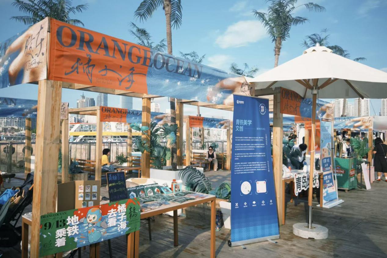 “乘着地铁去看橘子海”,这句浪漫的号召通过车站灯箱、PIS屏幕传递至城市角落。五四广场站内,一份份精心设计的“看海指南”便民条,被乐迷欣然取走。演出当晚,当青铁美学的展位出现在海边现场,文创产品成为了共享此刻的“信物”。那一刻,品牌与城市、音乐与出行完成了深层共鸣。