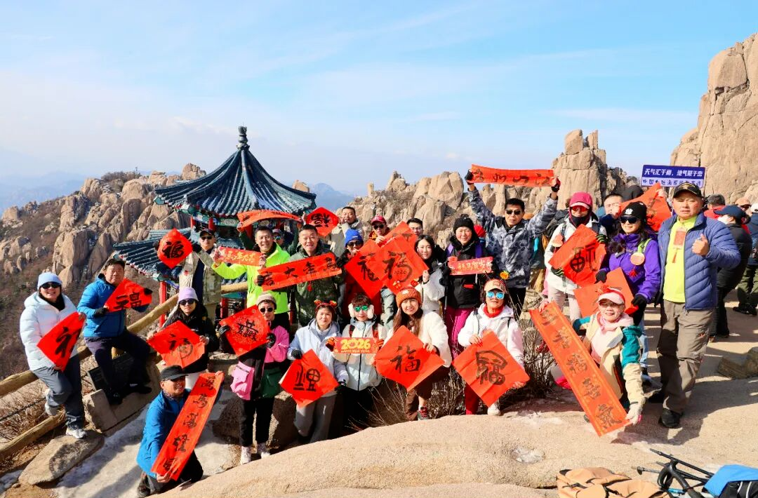 巨峰是崂山之巅,登高望远,寓意新的一年事业高升,视野开阔。