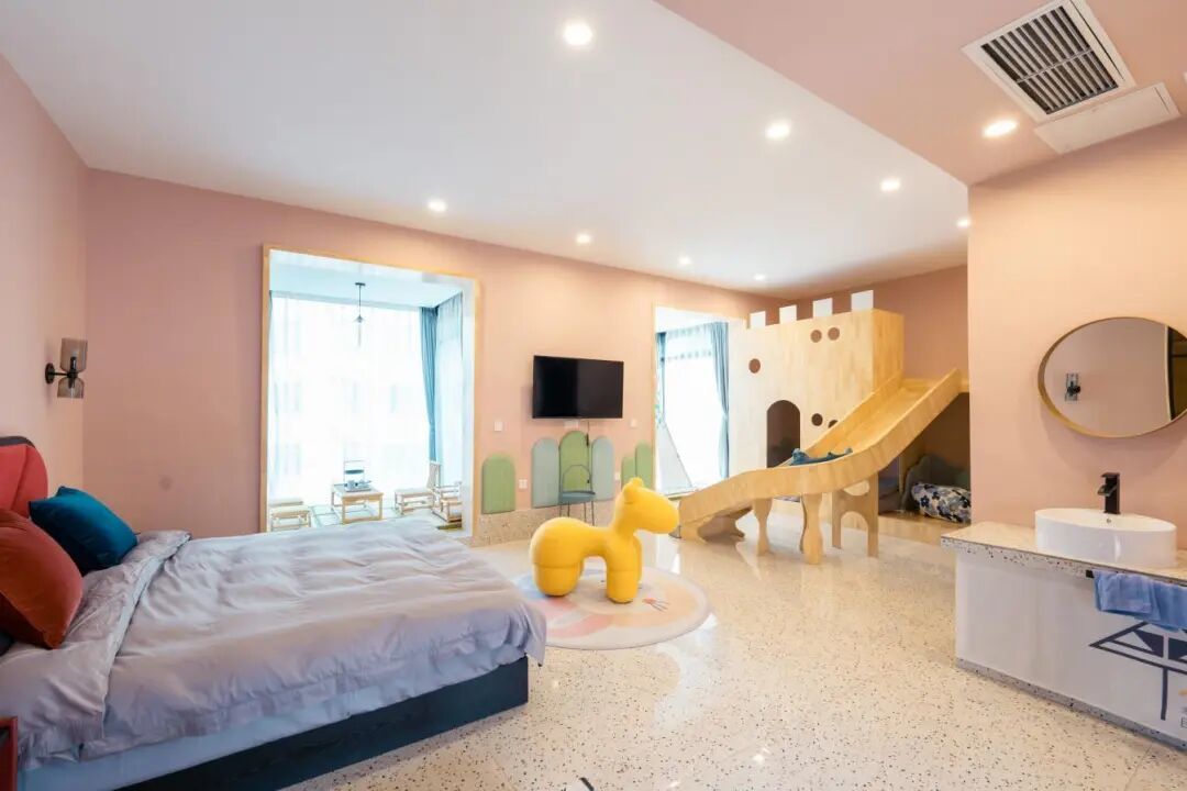 民宿坐落于青岛崂山仰口风景区,依山傍海,翠林环绕。步行2分钟达景区、5分钟至沙滩,自驾可游环海公路。房型宽敞,配滑梯床、榻榻米茶台;内设泳池、滑梯、儿童乐园、家庭影院等。