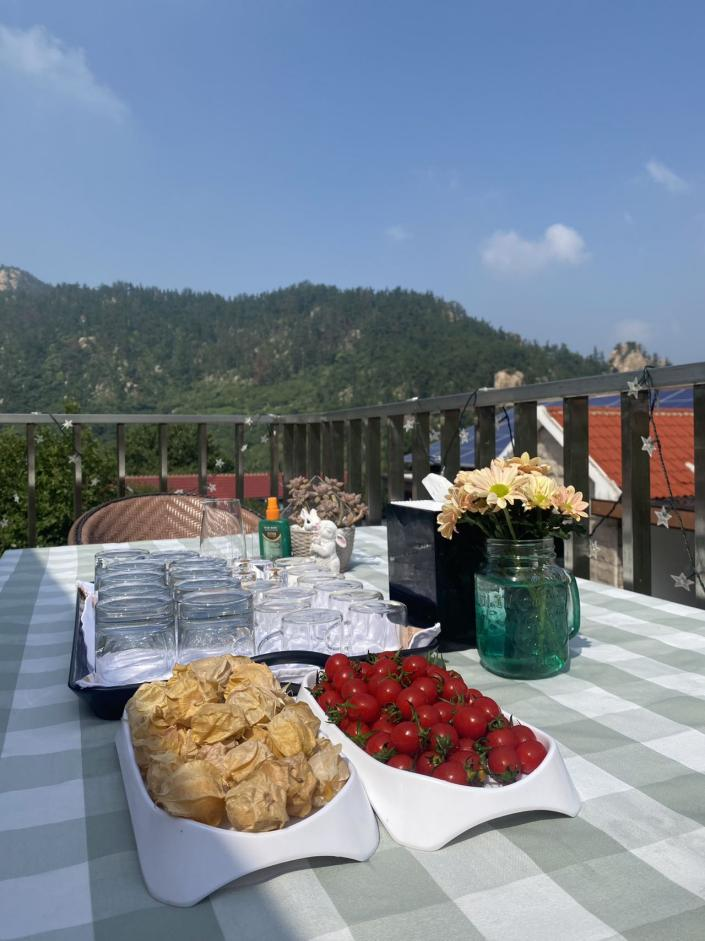 民宿面朝流清河,落地窗框碧海银浪,晴帆夜波皆入画;背倚崂山黛峰,推窗见松涛晨雾,暮霭山影四季变幻。门前细沙软草,露营观海两相宜。山海画卷,随潮汐铺展,随光影流转。