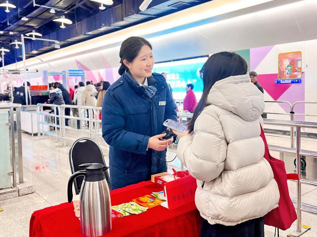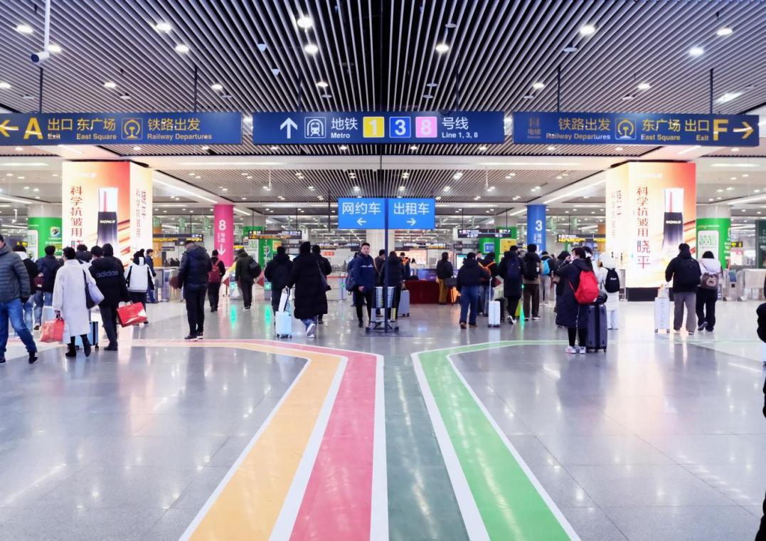 全线网、22项——车站内设休息座椅,提供热水、爱心预约、行李打包等22项便民举措,春运以来服务乘客4万人次,温暖守护出行,用细致服务温暖每一段团圆旅途。