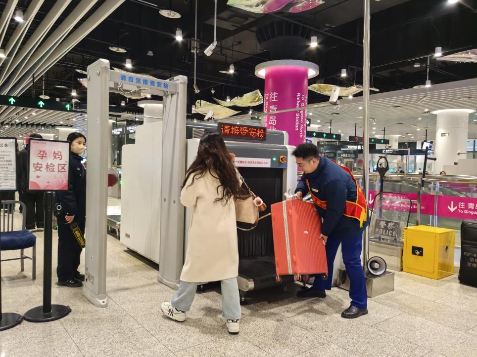 33万——青岛北站国铁换乘地铁免安检改造升级,以安全高效的换乘体验,守护33万旅客旅途平安返程、顺畅出行。