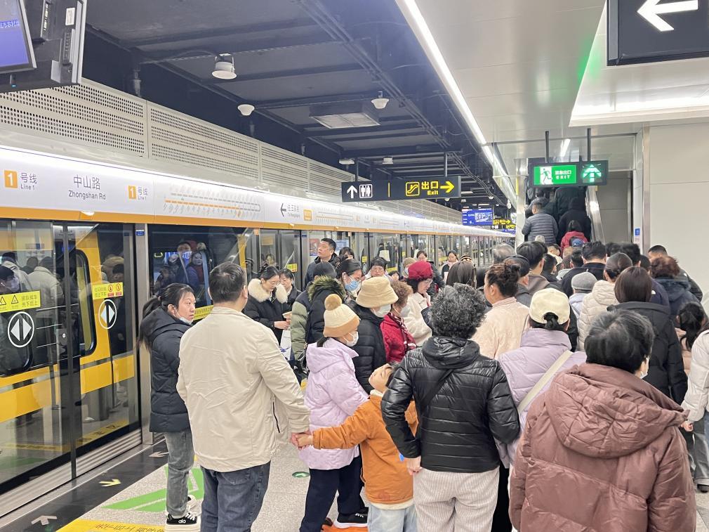 (中山路站内外人潮涌动)