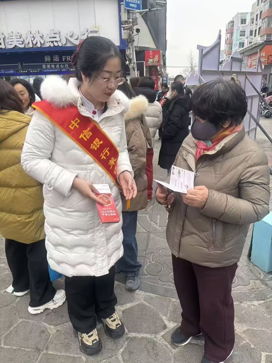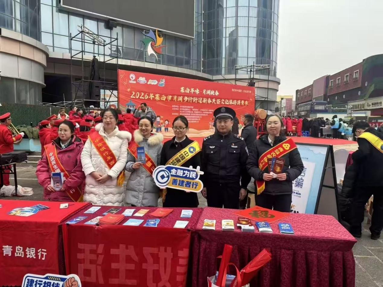 莱西市月湖商业街张灯结彩、人流如织,由莱西市政府主办的新春综合大集市正火热开展。在热闹的集市之中,一处反诈宣传展台格外醒目——这里是莱西市公安局反诈中心联合多家银行共同设立的反诈宣传阵地。中信银行青岛分行以“警惕诈骗新手法 不做电诈工具人”为主题,与公安民警并肩开展宣传活动,将一份沉甸甸的“安全年礼”送到市民身边。