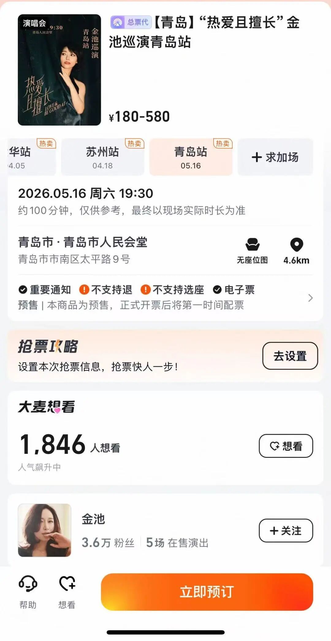 大麦、猫眼等正在预售中