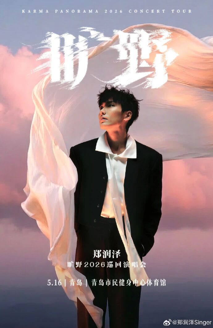 5月16日,郑润泽「旷野」2026巡回演唱会-青岛站,将在青岛市民健身中心体育馆举办,新生代歌手郑润泽邀你共赴一场属于青春的旷野之旅。
