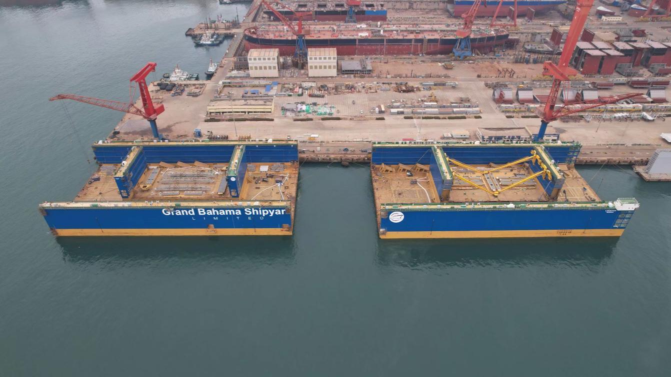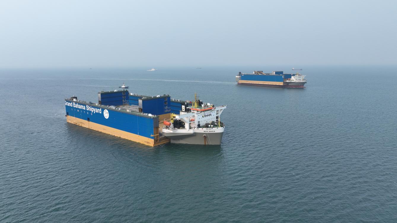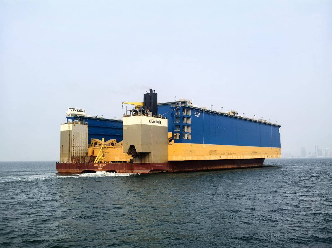 近日,青岛引航站在内锚地连续完成两次超高精度浮装作业,分别于3月8日、3月11日成功将北海造船厂建造的世界最大级别浮船坞“Lucayan”号分段浮装至半潜船 “Blue Marlin” 与 “White Marlin”轮,为其共同运往巴哈马奠定坚实基础,彰显青岛引航站在复杂海工装备引航领域的顶尖实力与精准把控能力。