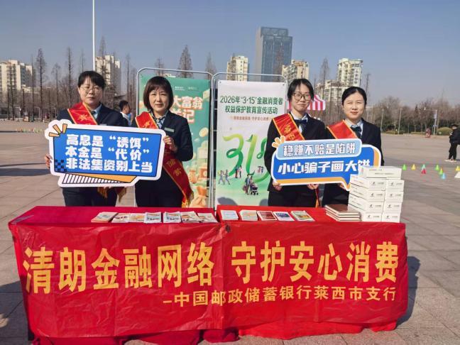 在“3·15”国际消费者权益日来临之际,为深入践行“金融为民”服务理念,营造良好的金融消费环境,邮储银行莱西市支行紧扣“清朗金融网络 守护安心消费”主题,在莱西市人民广场开展了一场形式多样、内容实用的消费者权益保护宣传活动。