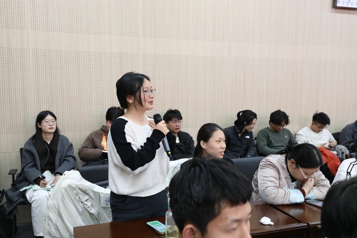 互动环节,现场学生踊跃提问,被问及李四光先生对自己影响最大的品格时,邹宗平深情回忆了外公严谨治学的态度和深沉的家国情怀,称这些品质贯穿了她的一生;针对地质领域学生关于大学期间成长发展的提问,邹宗平勉励大家要打好专业基础,保持好奇心与探索精神,同时积极锻炼综合能力,将个人成长融入国家发展需要。