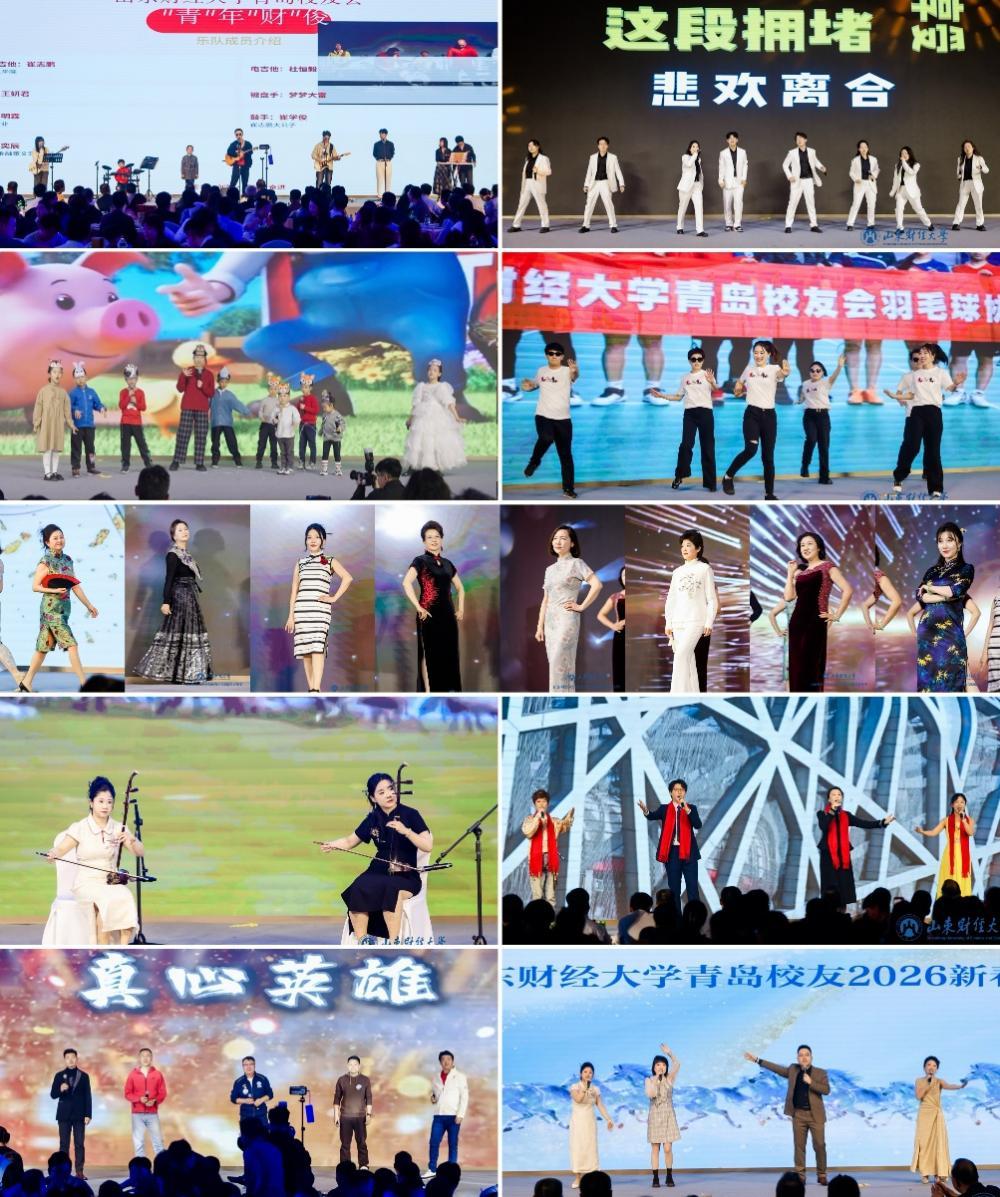 校友春晚上,师生、校友以及“财二代”同台献艺,活力与温情并举。校友乐队与“财二代”联袂演绎了歌曲《向阳而生》,温馨又充满朝气的画面,瞬间点燃了现场的气氛;舞蹈《青春当然》展示了校友们的飒爽英姿;“财二代”们表演的儿童英文剧《勇敢的小马》萌翻全场;健美操《战马》充满了酷炫的力量;双人二胡演奏的《赛马》用精湛的技艺展现了万马奔腾的磅礴气势;女神校友们带来的《旗袍秀》惊艳全场,她们身着各色旗袍,迈着优雅的步伐,举手投足间尽显温婉与典雅,现场观众掌声雷动,经久不息;还有师生、校友共同打造的改编版歌曲《我爱你中国》,用熟悉的旋律融入京剧元素,表达了对祖国的无限热爱和美好祝福,让校友们耳目一新。足球等几位协会会长的小合唱《真心英雄》,唱出了对生活的热爱和对未来的信心……晚会在全体演员合唱《相亲相爱》中圆满落幕。