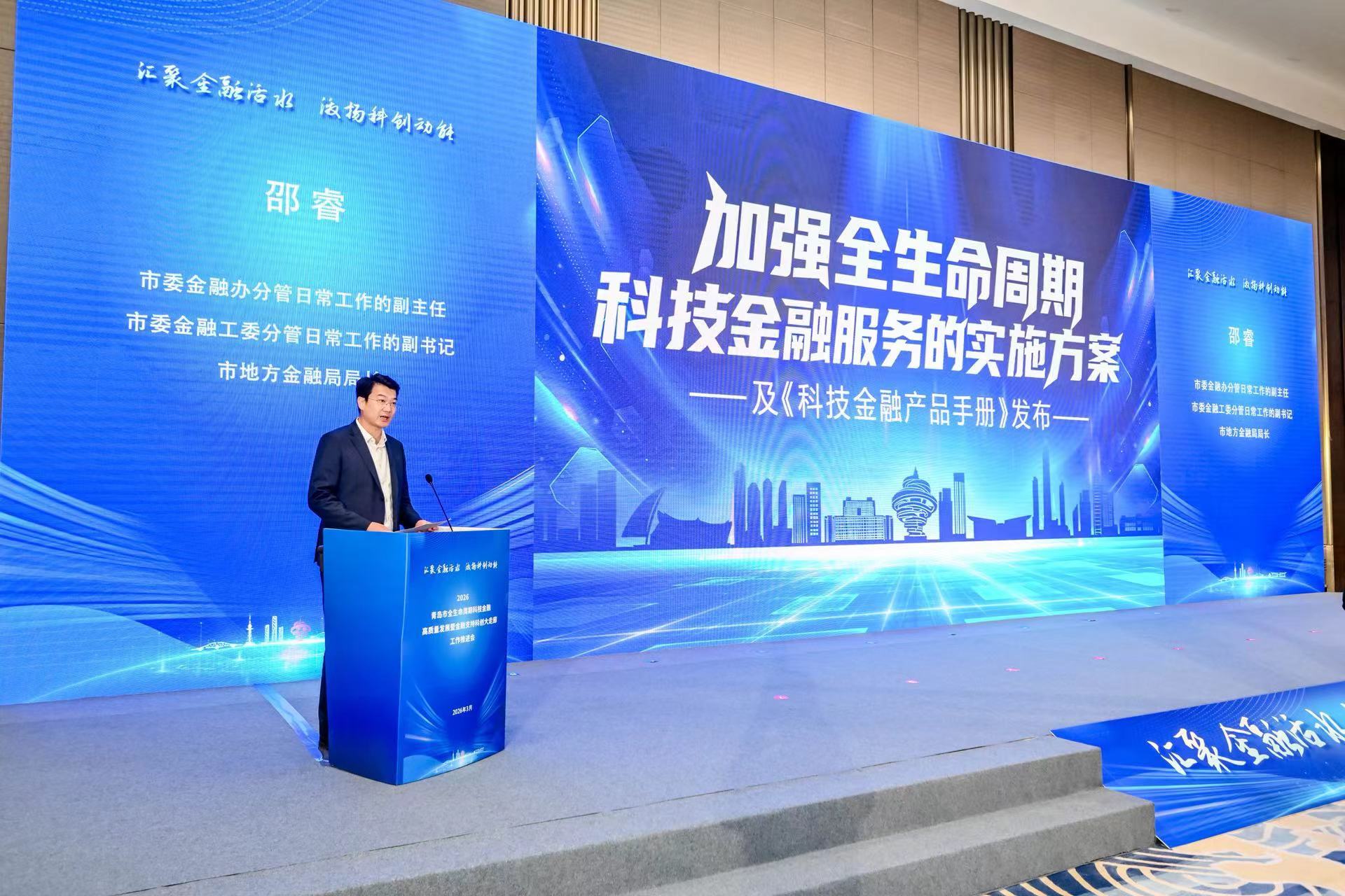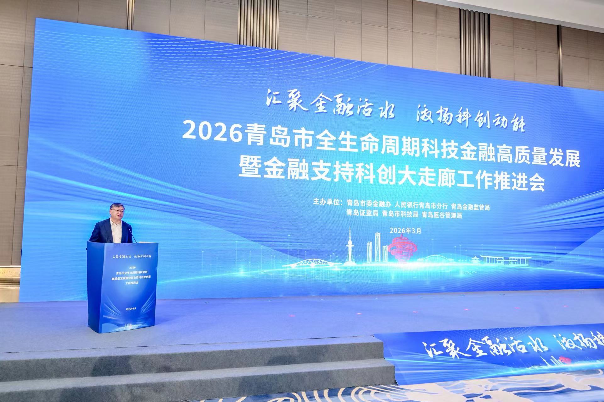 为深入贯彻落实中央、省、市有关决策部署,切实做好科技金融“大文章”,强化科技企业全生命周期金融服务,加快构建“科技-产业-金融”良性循环,培育壮大新质生产力,2026年3月17日,2026青岛市全生命周期科技金融高质量发展暨金融支持科创大走廊工作推进会在青成功举办。