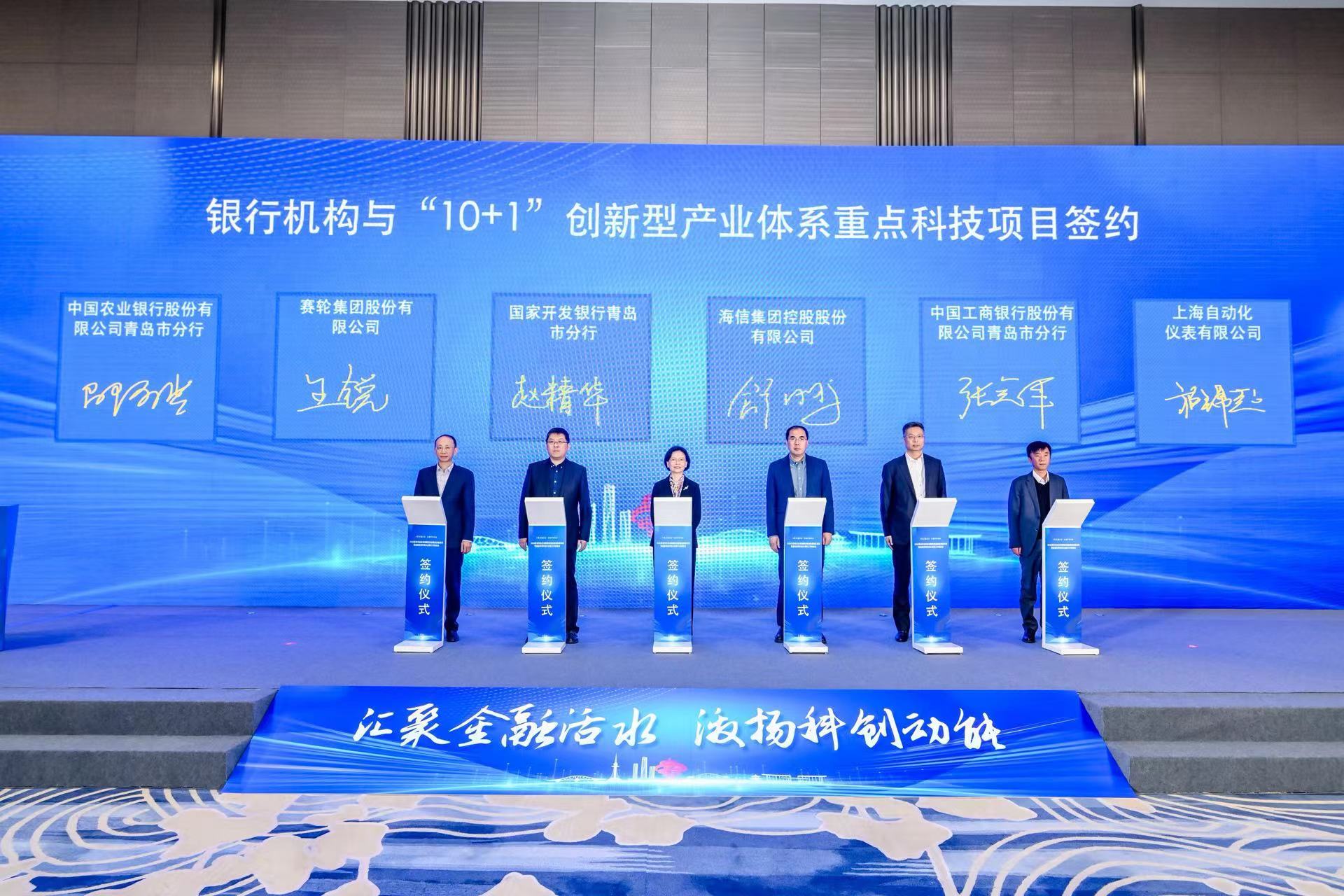 国开行青岛市分行、工商银行青岛市分行等6家银行机构与海信集团、上海自动化仪表有限公司等6家企业进行了重点项目现场签约。签约项目聚焦智能化、绿色化、集群化、高端化发展方向,覆盖智能装备、高端化工与新材料、生命健康、绿色能源等多个“10+1”创新型产业,意向合作金额近60亿元。