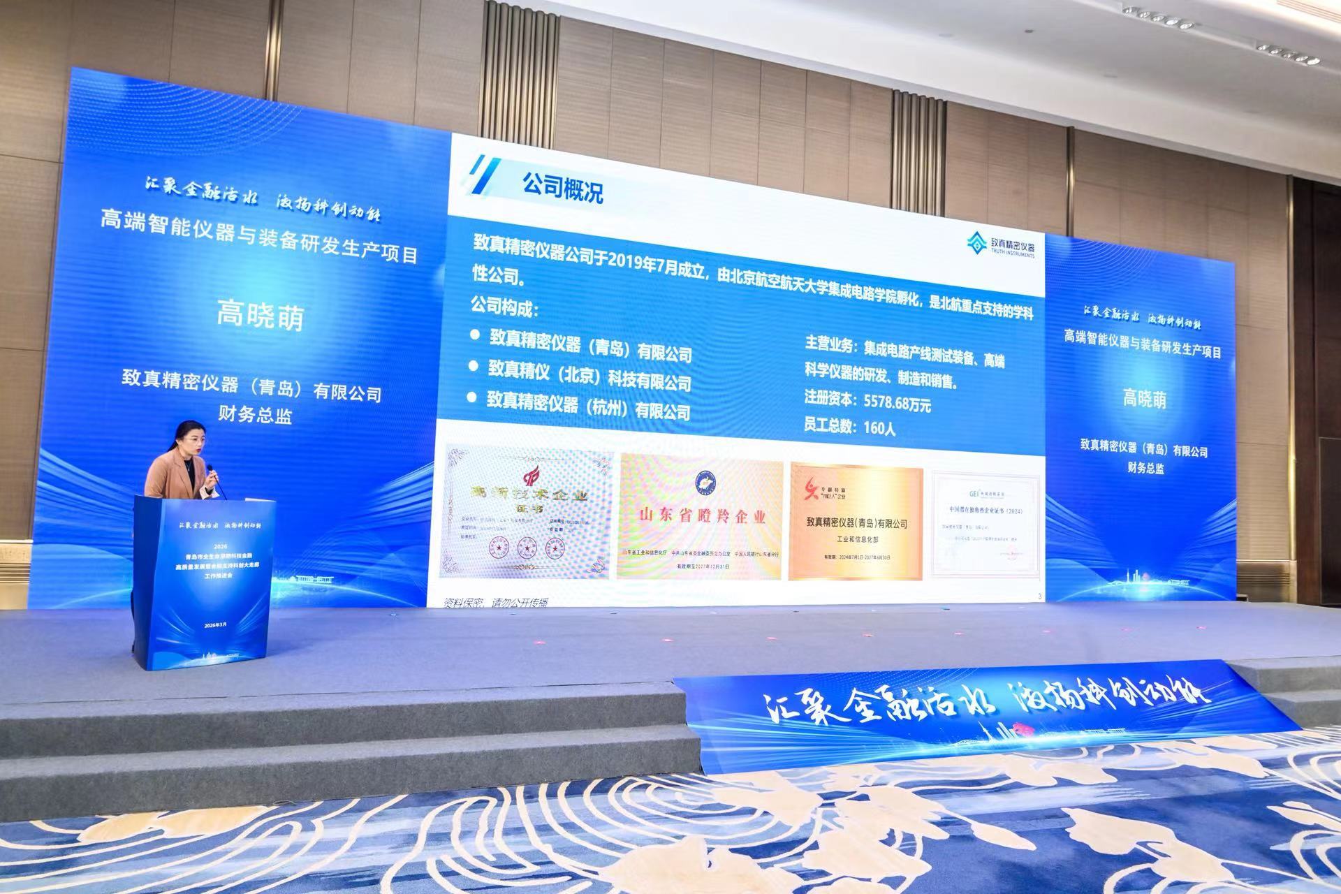 青岛市科技局、青岛金融监管局、青岛证监局分别围绕科技金融贷款贴息和风险补偿以及金融监管、资本市场服务科技创新等相关政策措施进行了详细解读。致真精密仪器(青岛)有限公司、山东岱佑医药科技有限公司等9家优质科技企业进行了现场路演推介,与会企业与金融机构进行了面对面沟通对接。