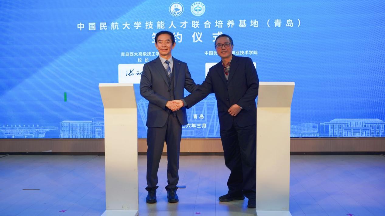 2026年3月19日,中国民航大学技能人才联合培养基地(青岛)揭牌仪式在青岛西大高级技工学校隆重举行,中国民航大学职业技术学院院长、教授王力,青岛西大高级技工学校校长、二级教授张汝山共同为基地揭牌,两校强强联手,开启航空技能人才培养新篇章。