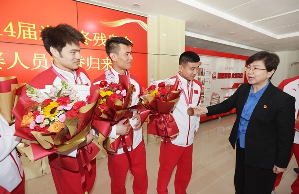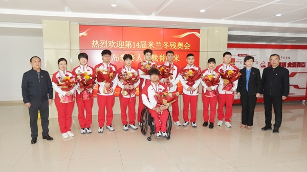 3月19日下午,搭载着第14届意大利米兰冬季残疾人奥林匹克运动会青岛参赛人员的大巴车缓缓驶入青岛市残联。青岛市残联班子成员、工作人员早早等候在现场,手持鲜花,以热烈仪式迎接载誉归来的参赛人员,向他们致以崇高敬意和诚挚祝贺。