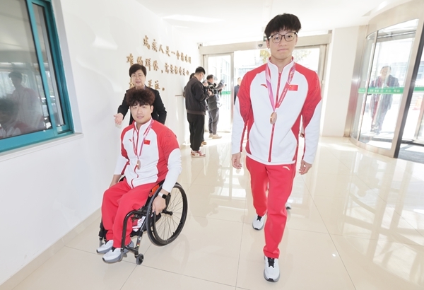 欢迎仪式上,青岛市残联党组书记、理事长张艳与每一位参赛人员亲切握手,仔细端详他们胸前的奖牌,向他们送上鲜花和祝福。“这枚铜牌不亚于金牌!”张艳表示,队员们在赛场上不畏强手、奋勇拼搏,在逆境中逆转取胜,用坚韧与汗水诠释了“更快、更高、更强——更团结”的奥林匹克精神,展现了自强不息、奋勇争先的精神风貌。她强调,青岛市残联将始终做队员们最坚实的后盾,持续做好训练保障、生活服务等工作,助力队伍在未来赛场上再创佳绩。