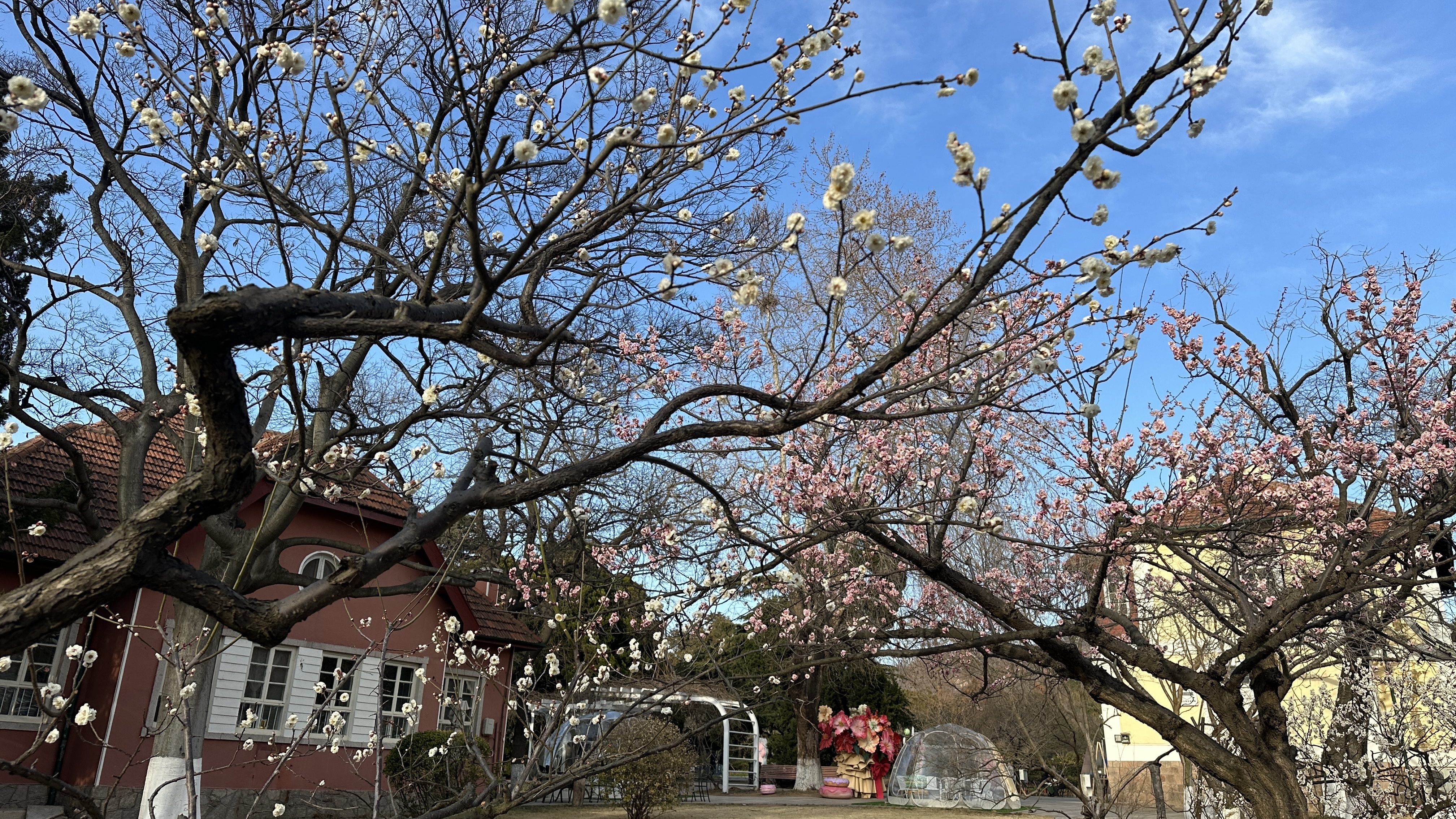 在中山公园,梅花迎来盛花期,吸引了许多游客前来赏花踏青。“早就听说中山公园的梅花品类多,特意带着家人来感受春日气息,红的、粉的、白的梅花缀满枝头,随手一拍都是美景。”正在拍照的游客王女士笑着说,“赏完梅花还能在公园里的咖啡馆坐一坐,感受一下青岛的慢生活,这种沉浸式体验特别好。”“赏花热”带来“消费热”,文创零售、住宿、餐饮等行业也逐渐升温。