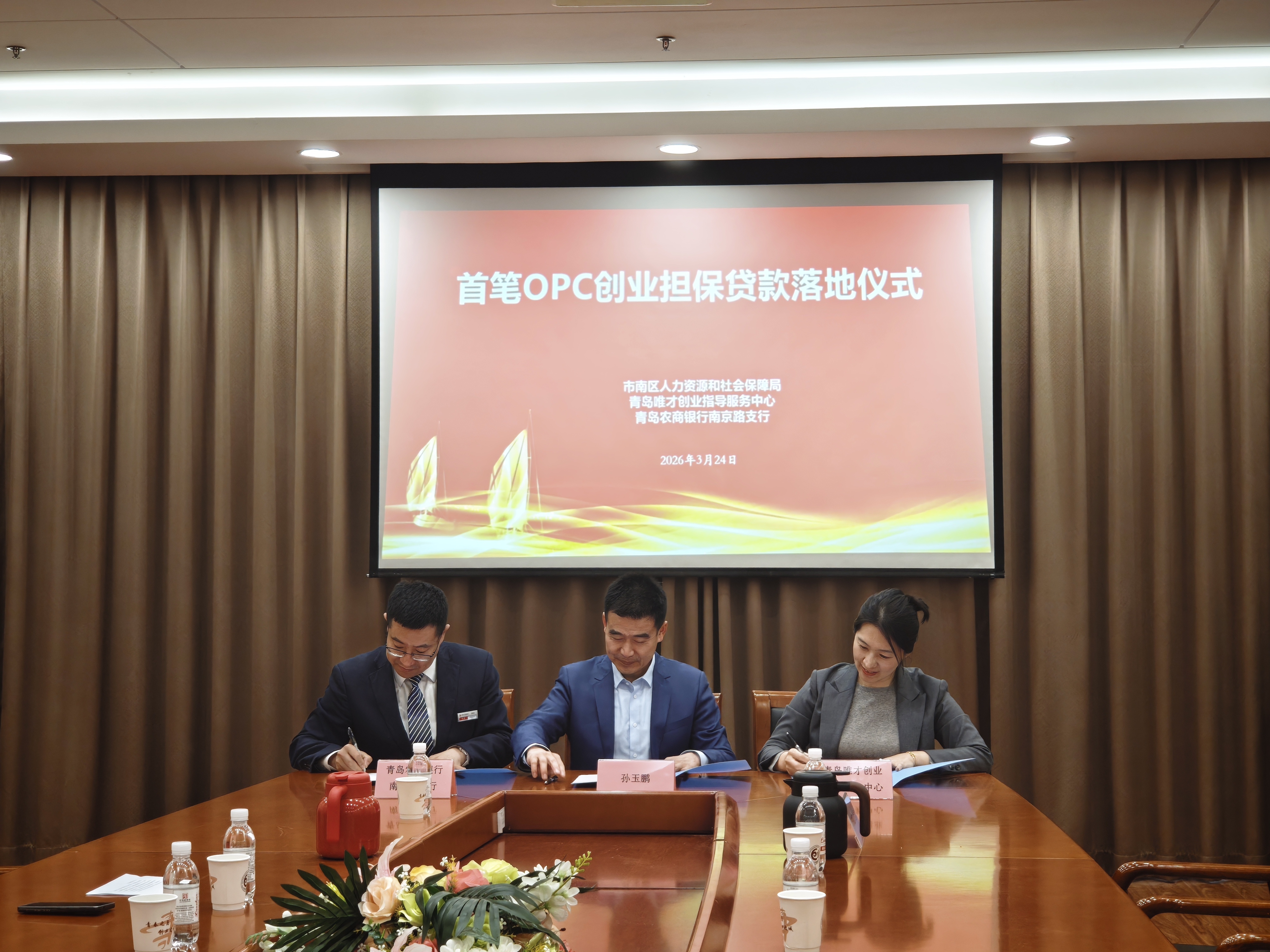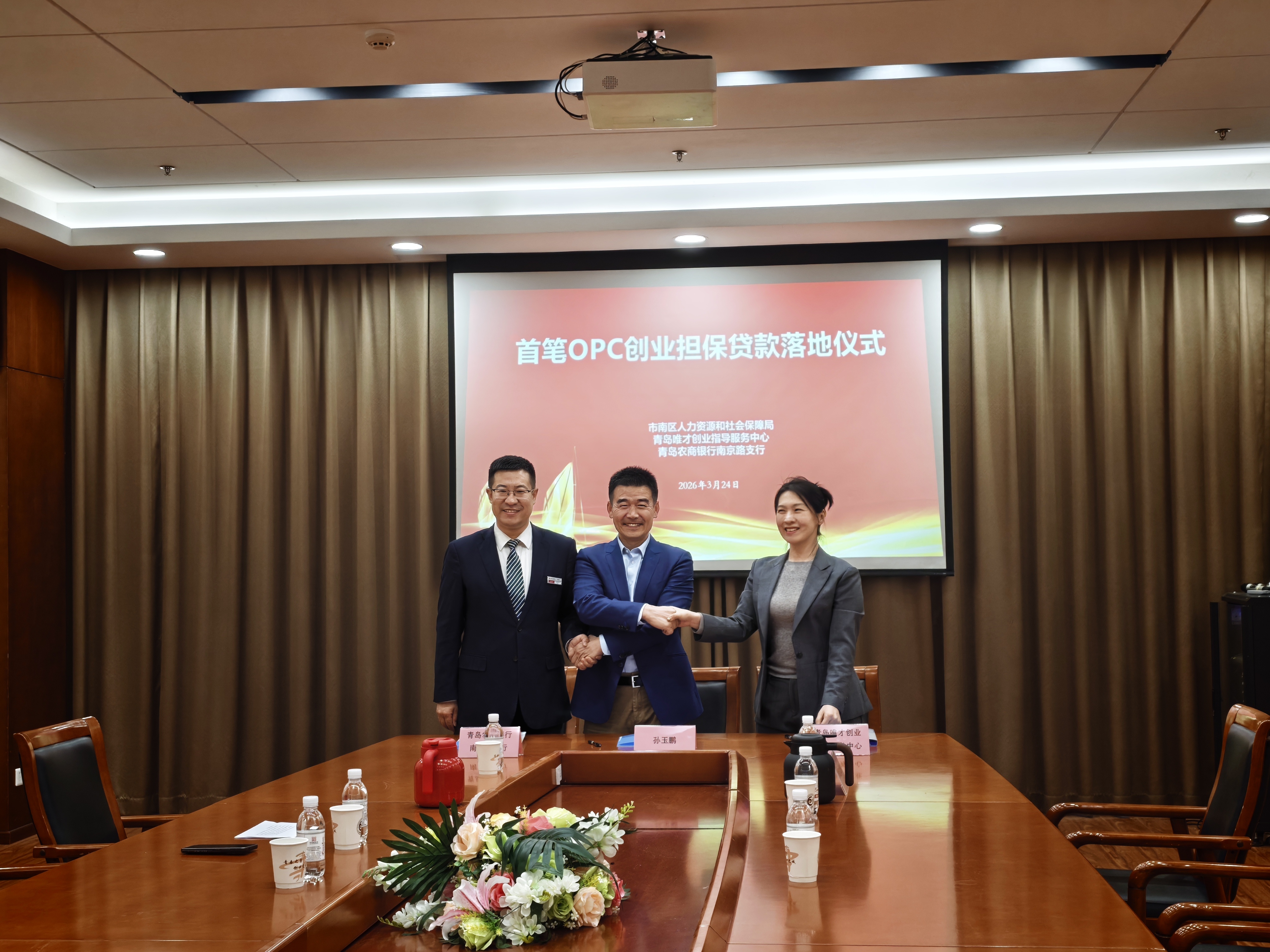 3月24日下午,青岛市首笔OPC创业担保贷款落地仪式在山东路15号青岛市创业赋能中心举行。青岛农商银行南京路支行与OPC创业者孙玉鹏正式签署创业担保贷款借款合同,贷款金额19万元。青岛唯才创业指导服务中心与借款人签订委托担保合同及反担保抵押/保证合同,标志着市南区创业服务工作在推动金融赋能OPC创业者方面,迈出关键一步。