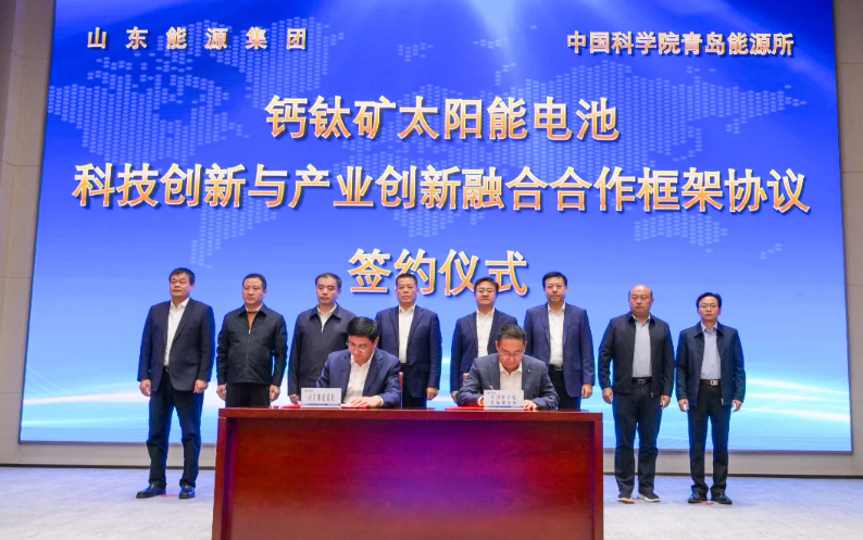 去年10月,青岛能源所(山东能源研究院)联合山东省科技厅、山东能源集团举办钙钛矿产业化高质量发展研讨交流会,会上研究所与山东能源集团签署钙钛矿太阳能电池科技创新与产业创新融合合作框架协议,“太阳能光电转化与利用全国重点实验室-技术验证与产业化示范基地”也同步揭牌。