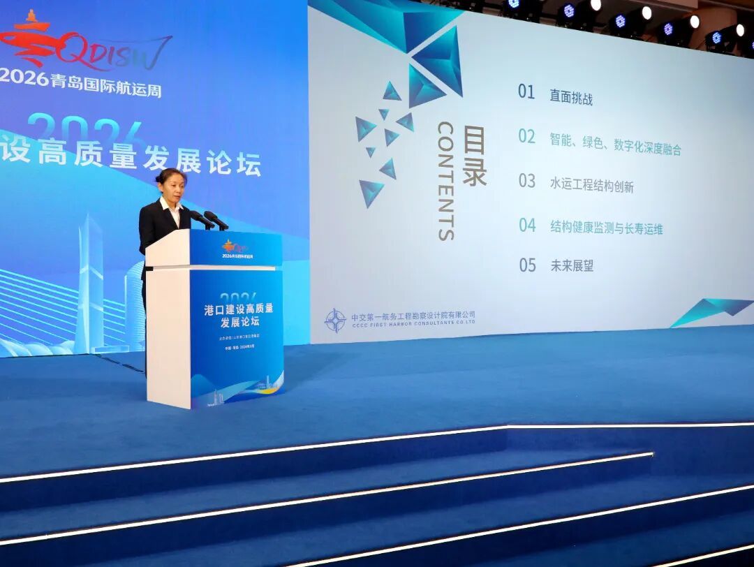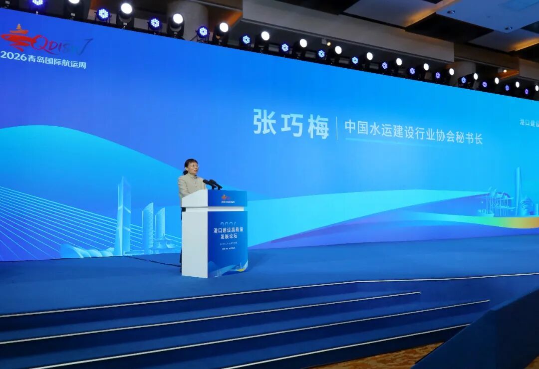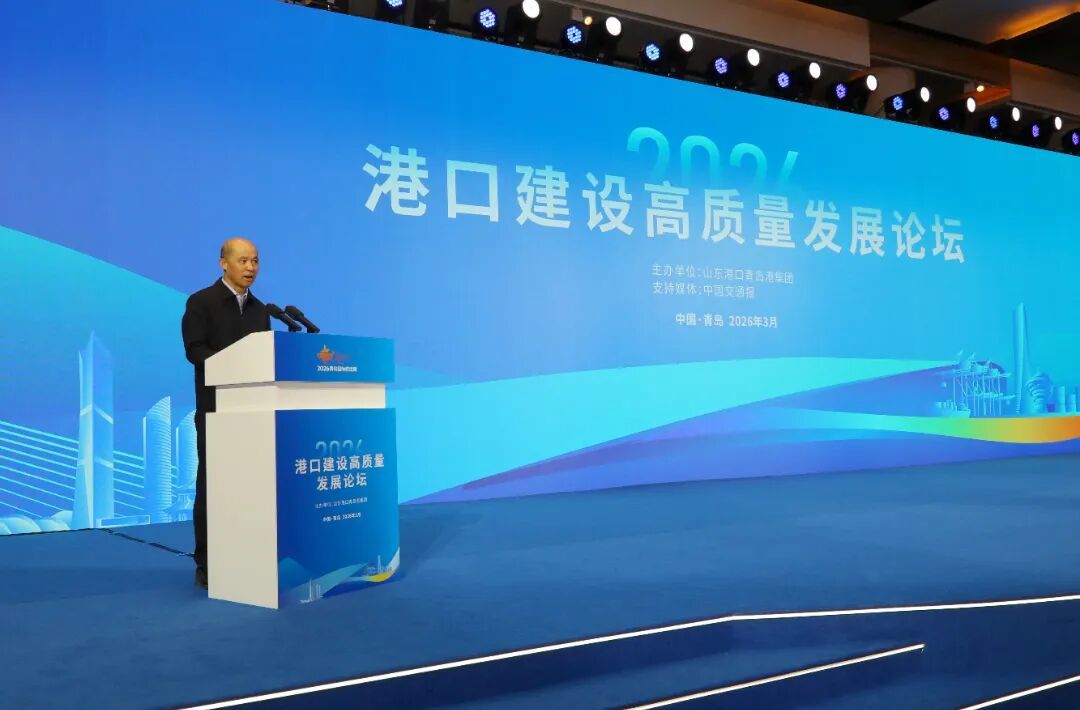 3月30日下午,2026青岛国际航运周·港口建设高质量发展论坛在青岛圆满举行。论坛以“筑港兴航,质领未来”为主题,紧扣海洋强国、交通强国战略部署,聚焦港口工程建设管理高质量发展,汇聚行业智慧、破解发展难题,为青岛国际航运中心建设注入强劲动能。交通运输部、山东省交通运输厅、中国交通报社、中国水运建设行业协会、C40城市气候领导联盟、山东省港口集团、青岛市交通运输局等单位领导出席论坛。行业领军企业及科研机构百余名学者汇聚于此,共商港口建设高质量发展大计。