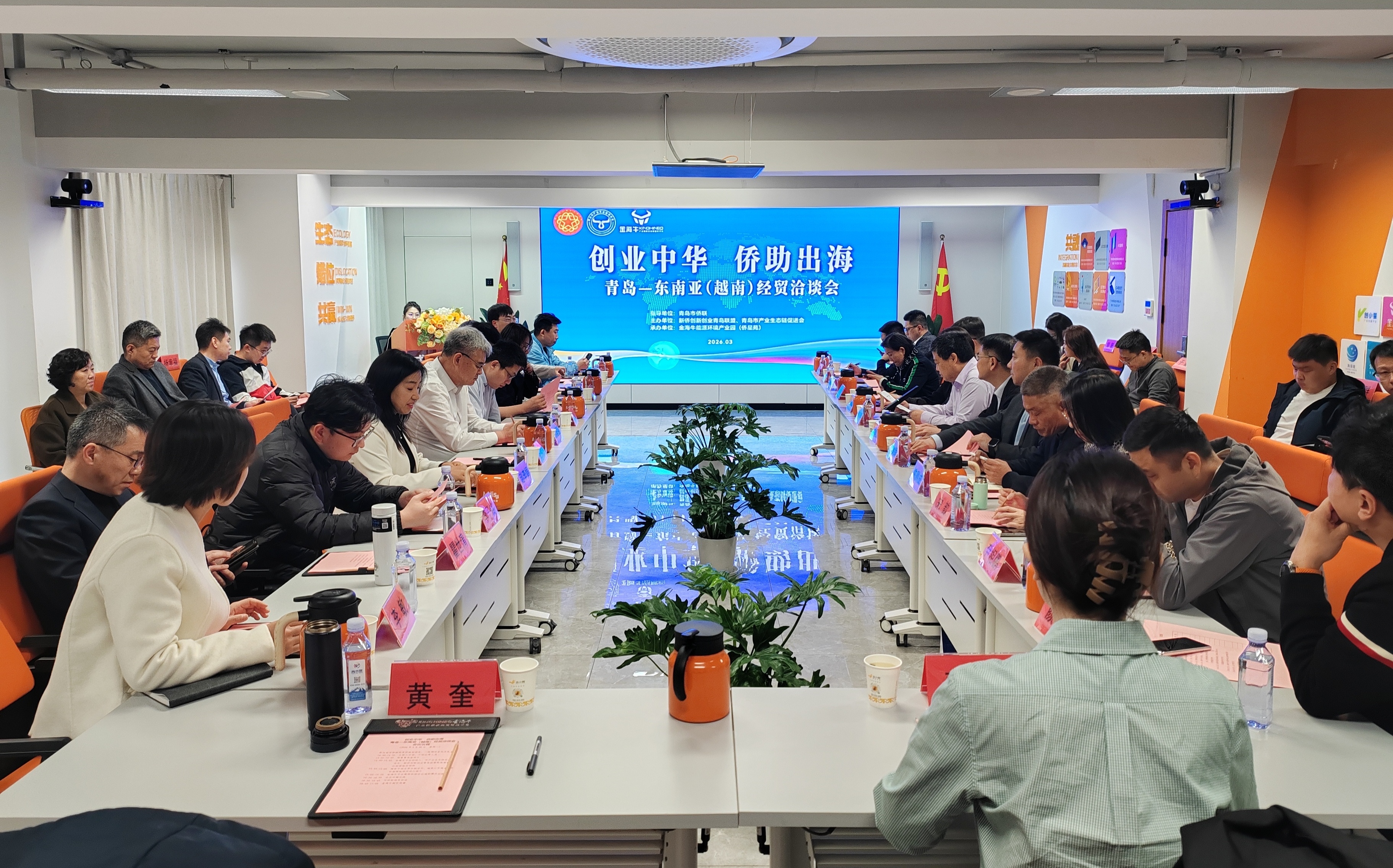3月30日下午,“创业中华 侨助出海”青岛—东南亚(越南)经贸洽谈会在金海牛能源产业园成功举办。本次活动由青岛市侨联主办,新侨创新创业青岛联盟、青岛市产业生态链促进会承办。青岛市侨联党组副书记、主席牛旭东出席并讲话。越南中国总商会副会长、越南山东商会会长孙国强,金海牛平台创始人、侨创青岛联盟轮值理事长、市产业生态链促进会会长江树国以及30余家青岛企业代表参加活动。