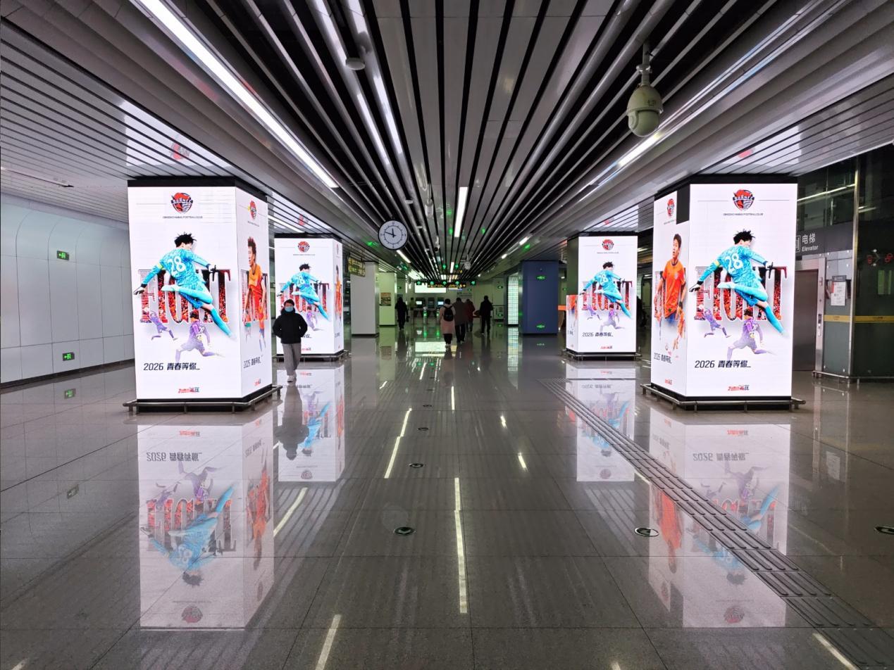 近日,青岛地铁苗岭路站和大埠东站内,青岛海牛赛事应援广告正式亮相,醒目的球队元素、热血的应援标语,成为出行路上的独特风景。青岛地铁以独特的情感语言,将站内空间打造为与粉丝产生共鸣的文化微景观,连接着粉丝的每一份热爱,让出行路成为奔赴偶像的仪式通道。