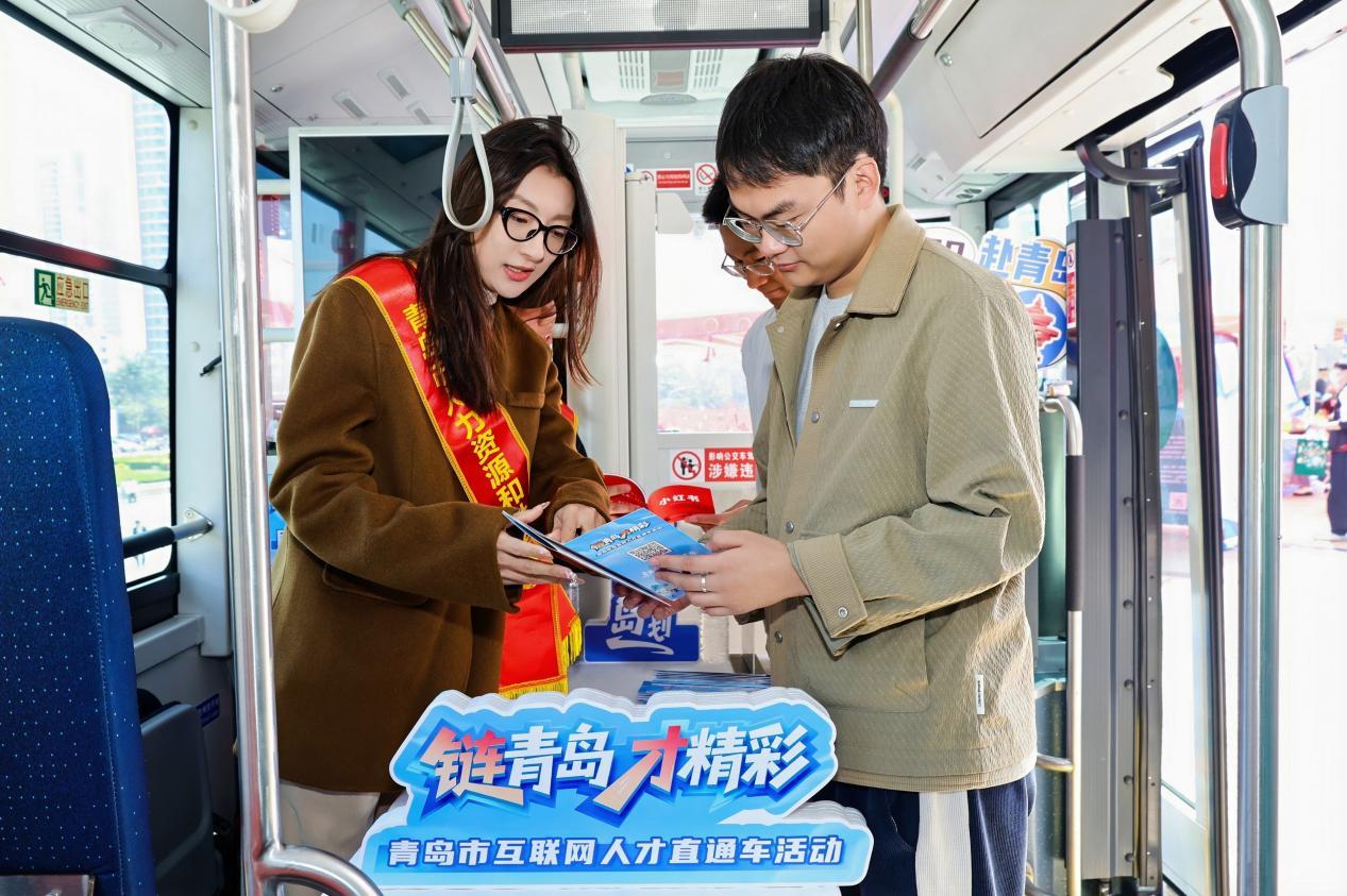 活动现场,一辆承载着岗位与梦想的“链青岛·才精彩”人才巴士成为校园里一道亮丽的风景线。作为现场流动的“人才服务站”,“链青岛·才精彩”人才巴士设置简历直投区,周边环绕企业展位,形成了“一站直达、即刻对接”的沉浸式招聘场景。人才巴士寓意让青年人才坐上直通车,从校园一站抵达职场、抵达梦想。这恰恰呼应了“链青岛·才精彩”的初衷——打造一条从实习到就业、从成长到成才的全程服务体系,让人才与城市在双向奔赴中彼此成就。