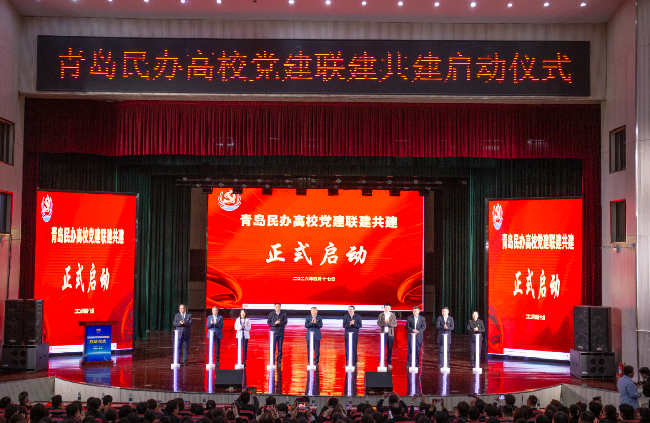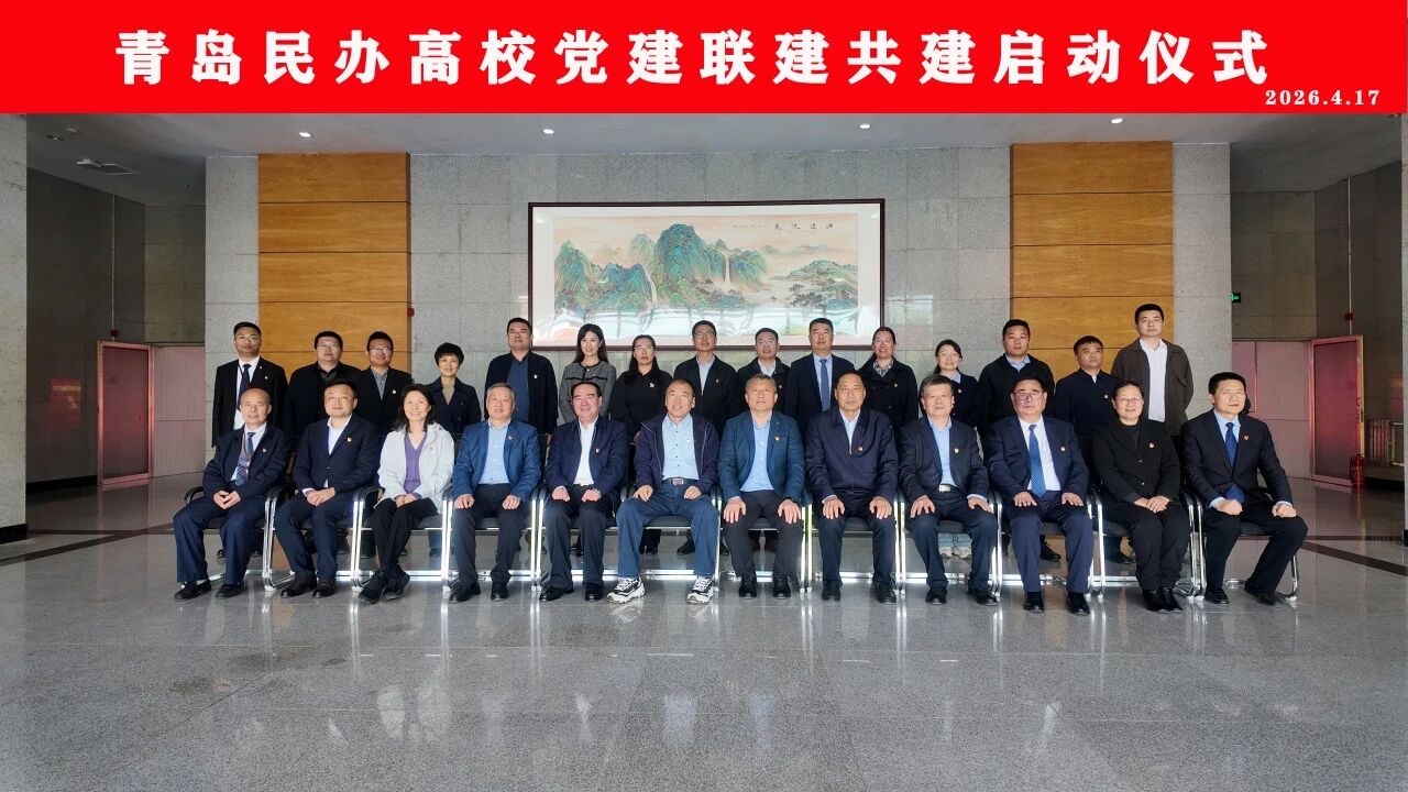 2026年4月17日,青岛民办高校党建联建共建启动仪式在青岛求实职业技术学院会堂隆重举行。本次活动以“共同引领显担当、党建互联谱新篇”为主题,旨在深入贯彻落实新时代党的建设总要求,深化青岛地区民办高校党建工作交流,构建“互帮互助、优势互补、资源共享、共同发展”的党建工作格局。青岛市教育机构行业党委工作负责人、二级调研员王涵,山东体育学院党委副书记张疆之到会指导,青岛各民办高校党委书记、省派党建工作联络员及党建部门负责人出席会议,青岛求实职业技术学院党委书记舒德峰主持仪式。
