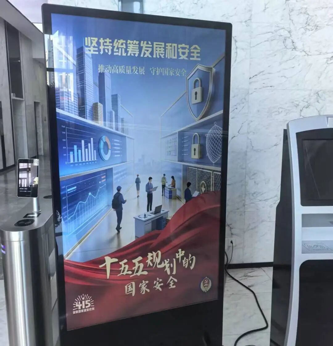 为让国家安全宣传融入日常、浸润人心,在经控、开投大厦等公共区域,利用电子屏、LED大屏等载体,滚动播放国家安全主题海报、宣传标语,将安全教育融入干部职工工作生活的每一个细节,让大家在潜移默化中学习安全知识、增强安全意识,着力营造“时时讲安全、处处守安全、人人护安全”的良好氛围。