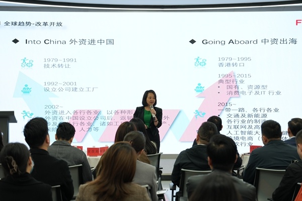 活动聚焦企业出海进程中普遍面临的跨文化管理磨合、海外用工合规管控、国际化人才招募、跨境用工风险防控等关键挑战开展深入交流。特邀FESCO Personnel HK总经理罗超英,带来《中企出海人力资源战略解码与实战落地》专题分享,为企业提供出海实操问题的全流程解决方案。市行政审批局就企业出海政务服务改革方案进行推广。中信银行就跨境金融服务支持情况开展宣介。参会代表立足经营实际,展开交流,“今天的专题分享,为企业海外业务布局、外派人员管理和劳动纠纷应对提供了可复制、可落地的管理思路,听完后我们收获了满满的实战经验。”青岛征和工业股份有限公司人力部长刘丁介绍说。